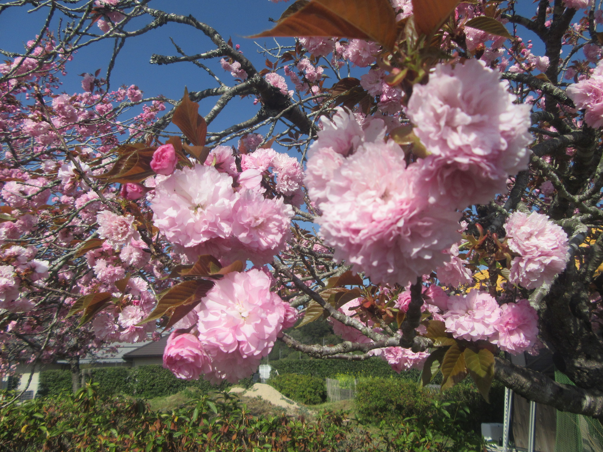 施設の庭を彩る八重桜は、利用者さまや職員の目を楽しませ、穏やかな春のひとときを届けてくれています。