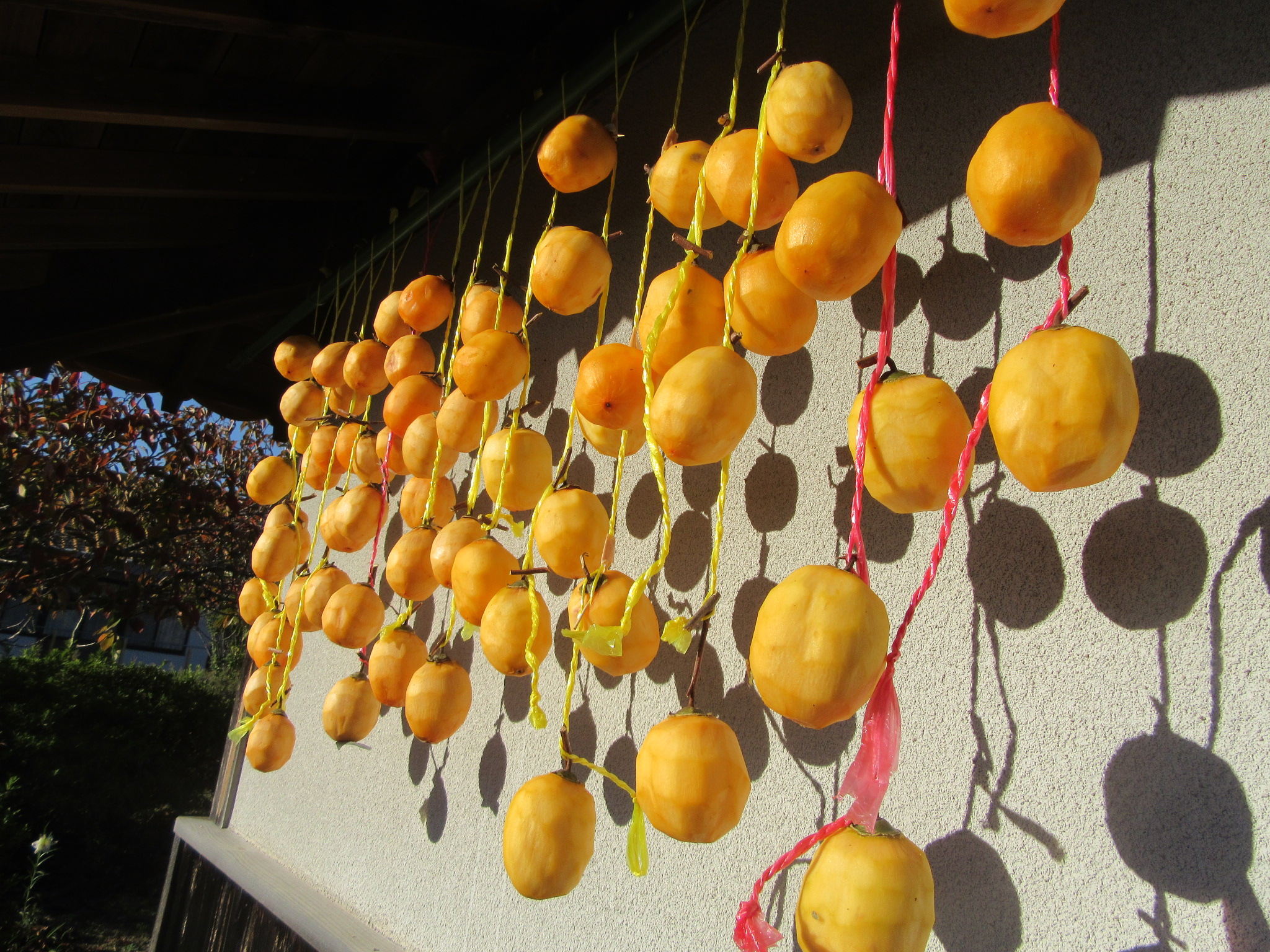 利用者様には柿の皮むきから紐かけまで丁寧に作業していただきました。