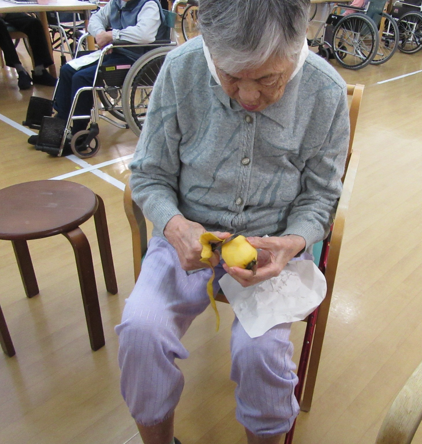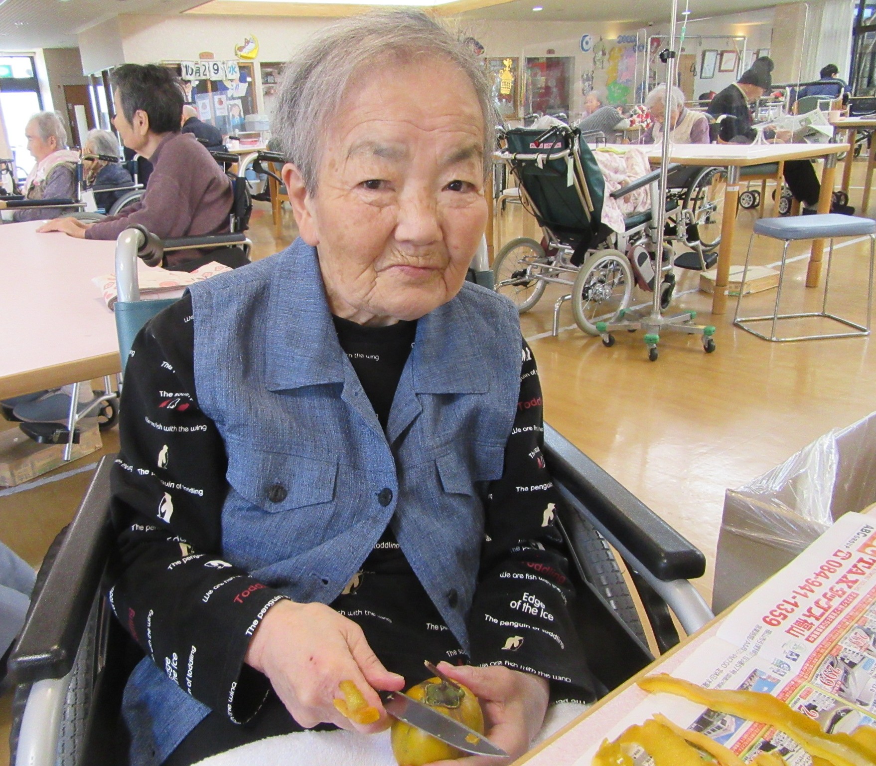 利用者様には柿の皮むきから紐かけまで丁寧に作業していただきました。
