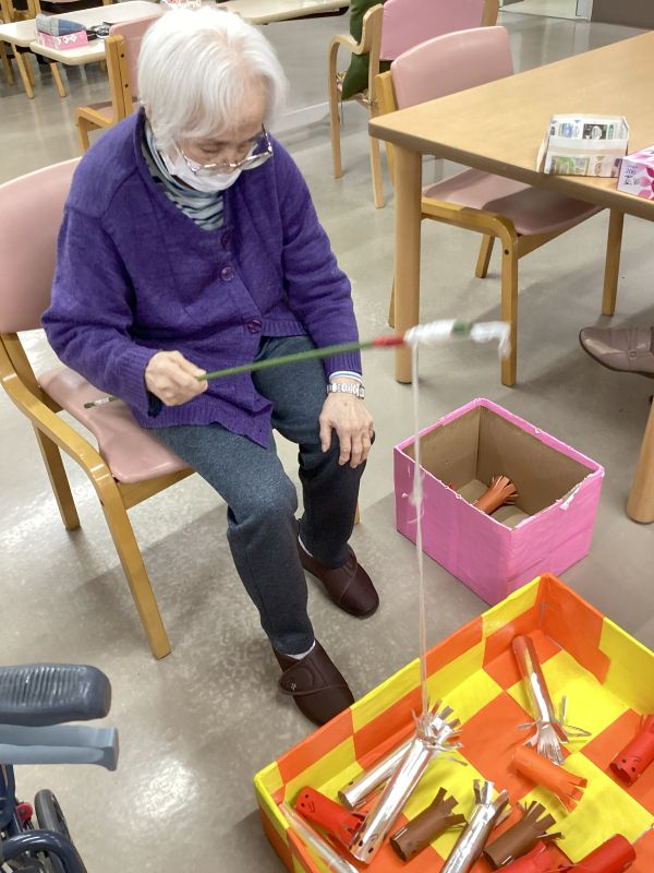 箱の中のタコを釣り、競いました。